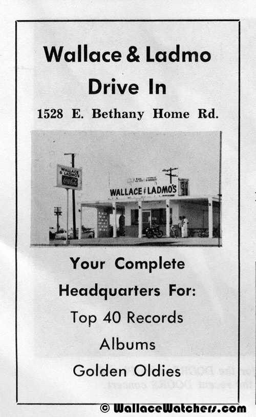 At this time, Wallace’s cousin Ned suggested that the duo branch out into drive-in restaurants. With Wallace, Ned and Ladmo pitching in the start-up money, two of the drive-ins opened in 1959. By 1966, there were five restaurants. They were located at 2402 West Thomas Road, 1528 E. Bethany Home Road, 6219 North 7th Street, 1336 West Indian School Road, and 4011 N. 32nd Street.